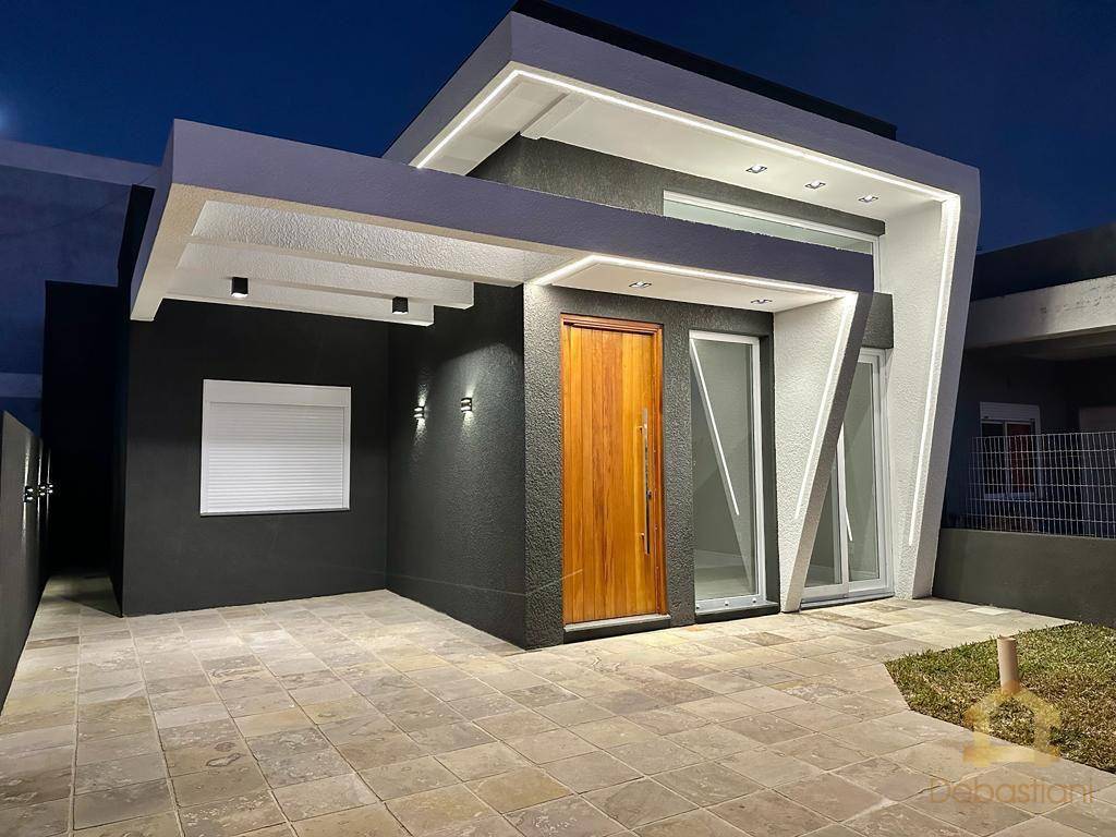 Casa térrea 3 dormitórios suítes 1 á venda na praia de Capão da Canoa no bairro Guarani no litoral norte gaúcho RS. Composto por 3 dormitórios sendo 1 suíte, banheiro social, área para lavanderia, living com pé direito algo, jardim, esquadrias em PVC, piso em porcelanato, banheiros com nichos em granito preto, calçados em basalto, iluminação completa instalada na fachada com led, água quente em toda casa. DEBASTIANI imobiliária especialista em IMÓVEIS no litoral RS.